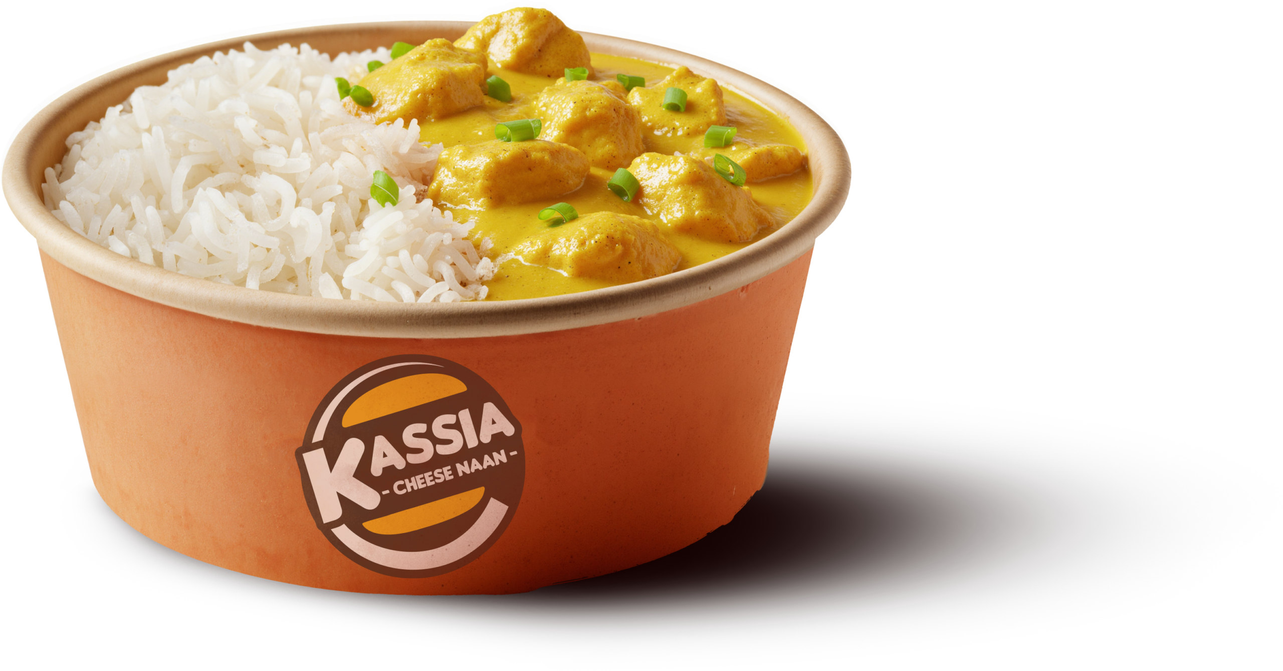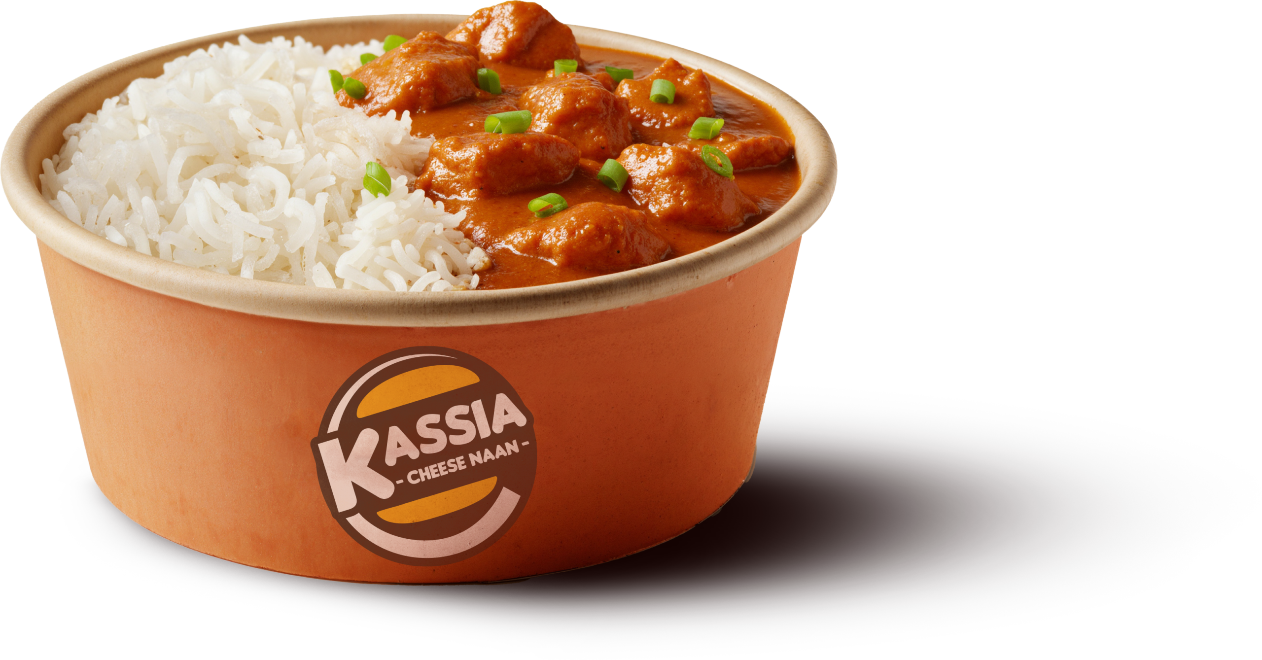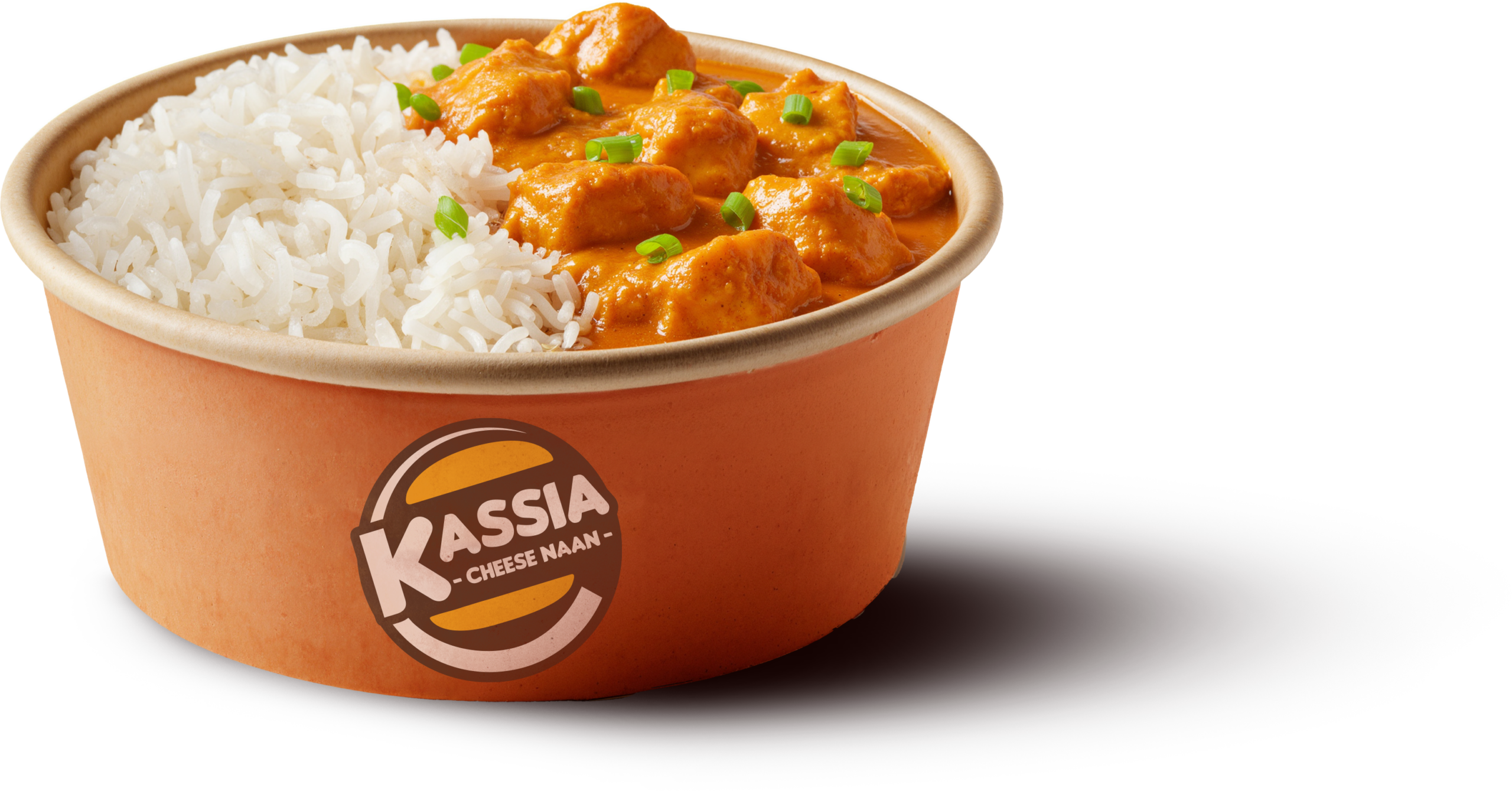 Poulet mariné puis mijoté dans une sauce butter aux amandes et noix de cajou, accompagné de son riz basmati.